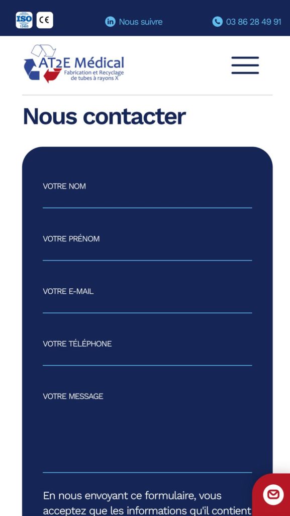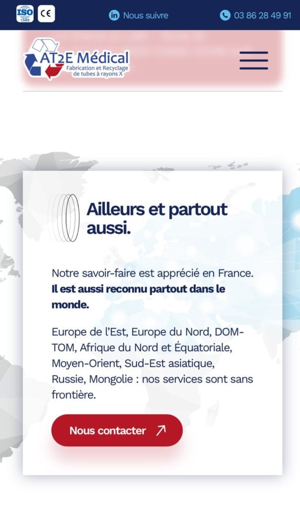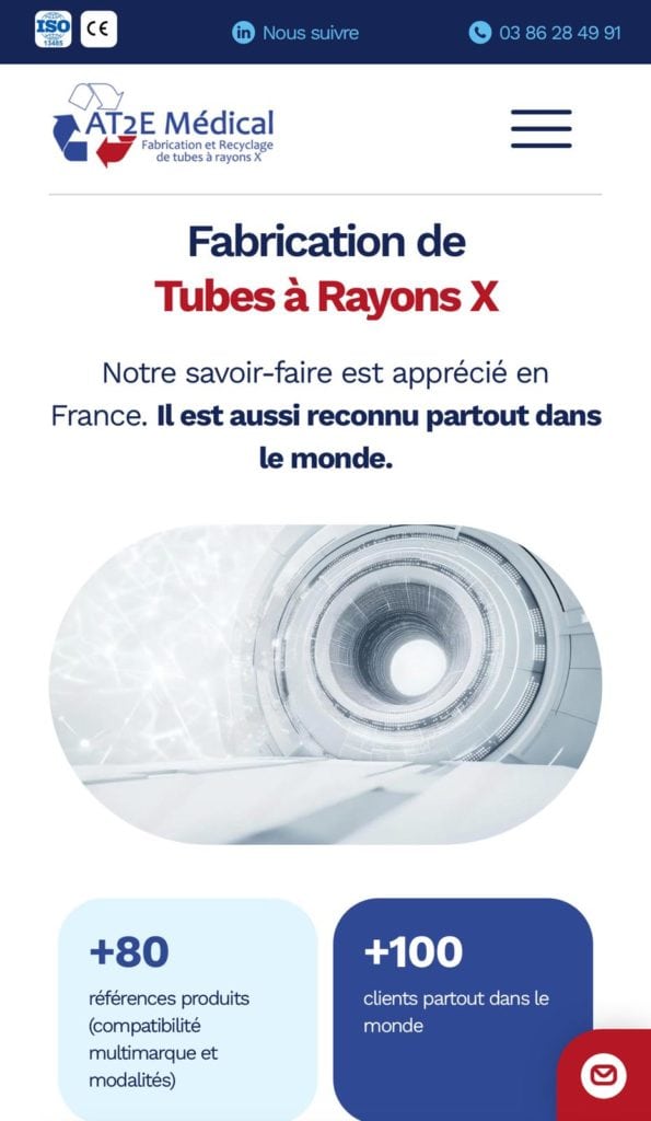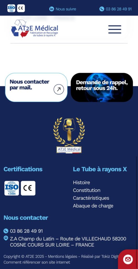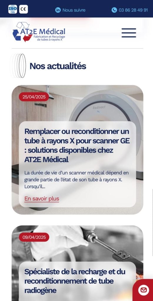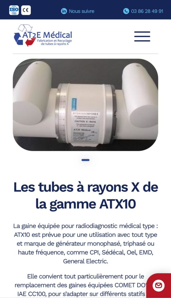 Le site a été pensé dans ses moindres détails pour offrir une expérience utilisateur fluide et intuitive. Chaque section a été optimisée pour valoriser les savoir-faire d’AT2E, notamment dans la reprise et réparation des inserts et gaines de tubes à rayons X, qui constituent l’essentielle de leur expertise.