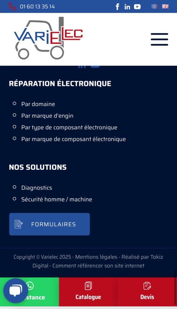 Pour répondre aux besoins de Varielec, spécialiste de la réparation électronique industrielle, notre agence WordPress en Ile-de-France, Tokiz Digital, a réalisé une refonte complète et sur mesure de leur site internet, pensée pour valoriser leur expertise technique et renforcer leur visibilité en ligne.