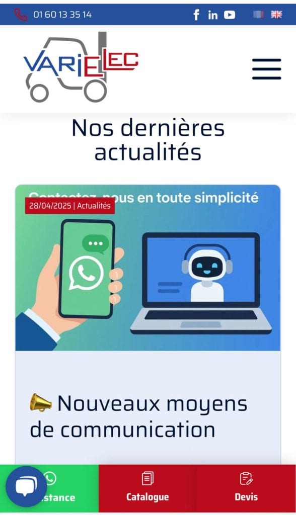 En parallèle, une optimisation SEO complète a été menée sur l’ensemble du site : balises, maillage interne, performance technique et rédaction d’articles optimisés SEO destinés à renforcer le positionnement de Varielec sur les requêtes clés du secteur.